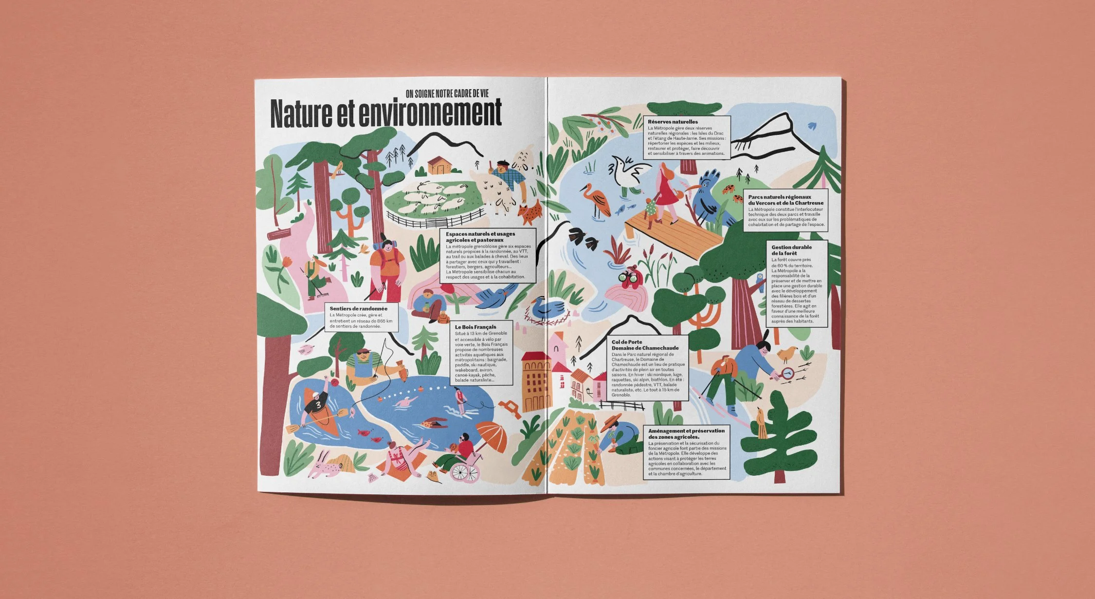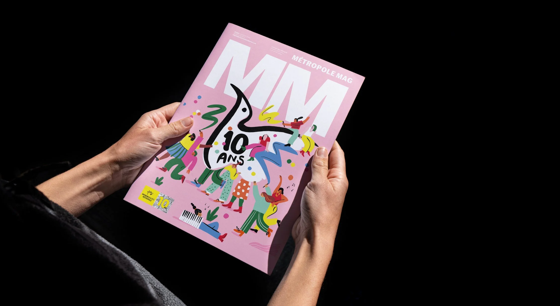 À l’occasion des 10 ans de Grenoble-Alpes Métropole, un Métropole Mag hors-série, spécial anniversaire de 48 pages, est rédigé et envoyé à l’ensemble des habitants. Il comporte une dizaine d’illustrations abordant divers thèmes tels que les déchets, les missions, les transports, les repères historiques, et bien d’autres.
