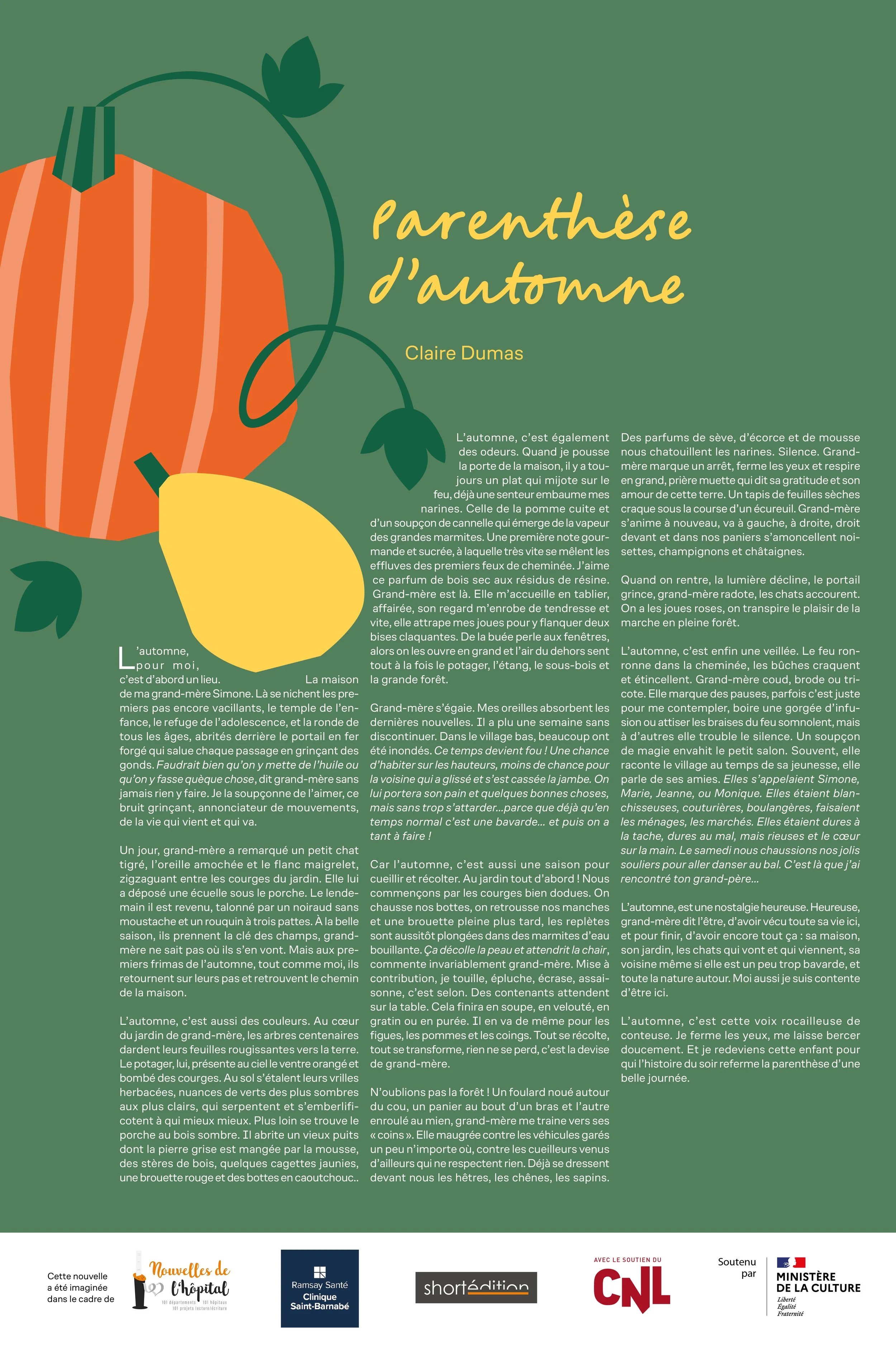 Short Édition — maison d’édition connue pour ses distributeurs d’histoires courtes — anime, aux côtés d’auteurs, des ateliers d’écriture au sein d’hôpitaux. À l’issue de ces temps de rédaction, les nouvelles sont affichées dans les différents services des établissements.